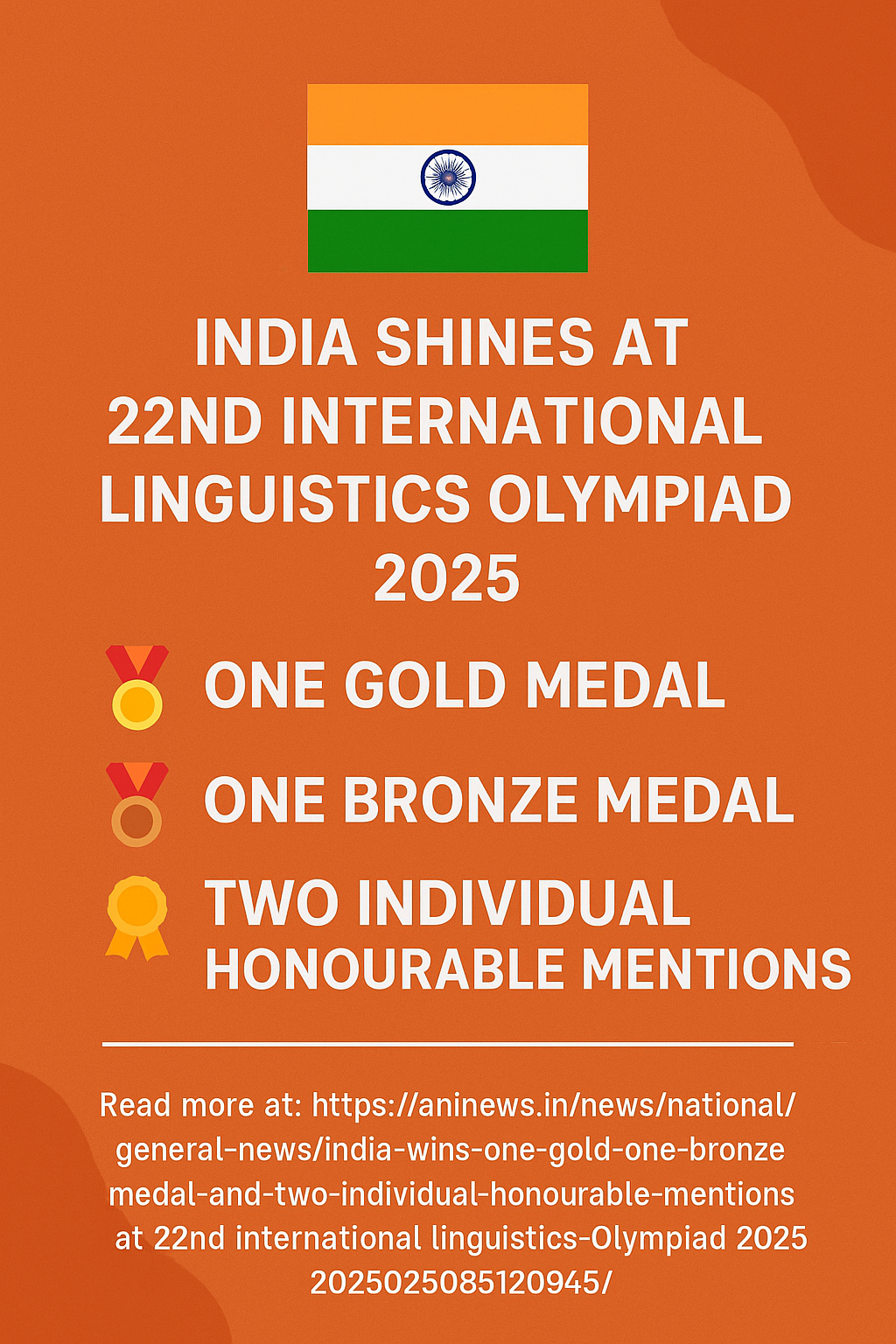 India’s performance at the 22nd International Linguistics Olympiad 2025 is an inspiring reminder of the immense talent that resides in our youth. Congratulations to the medal winners and honourable mention awardees for making the nation proud on the global stage. Their success serves as a beacon of possibility for students aspiring to represent India in global academic competitions.